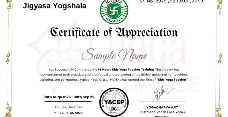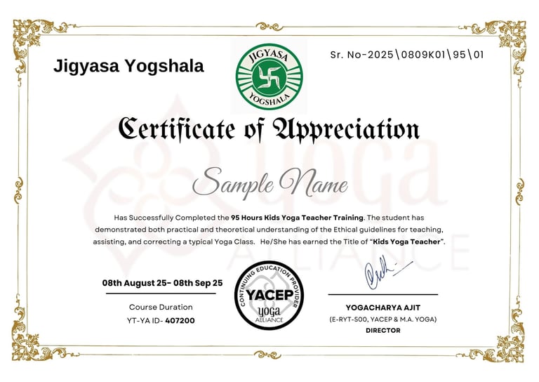 95 Hours Kids Yoga Teacher Training Course in Jigyasa Yogshala