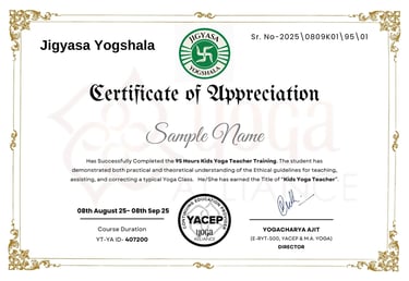 95 Hours Kids Yoga Teacher Training Course in Jigyasa Yogshala
